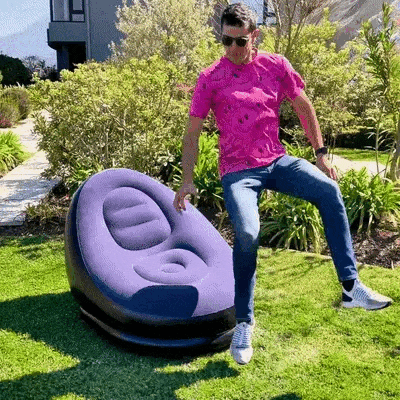 Imagina esto: llegas de trabajar, cansado, y solo quieres desconectar. Tomas tu sillón inflable, lo colocas en el balcón, inflas en 2 minutos y ¡listo! Apoyas los pies, tomas tu bebida favorita y finalmente sientes esa comodidad que te mereces.